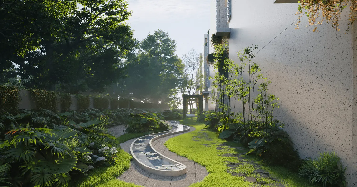 Expansive double-height lounges that open to a serene, car-free ground level surrounded by landscaped gardens. Enjoy the ease of private basement parking, curated amenities, and architecture that blends design and nature seamlessly.